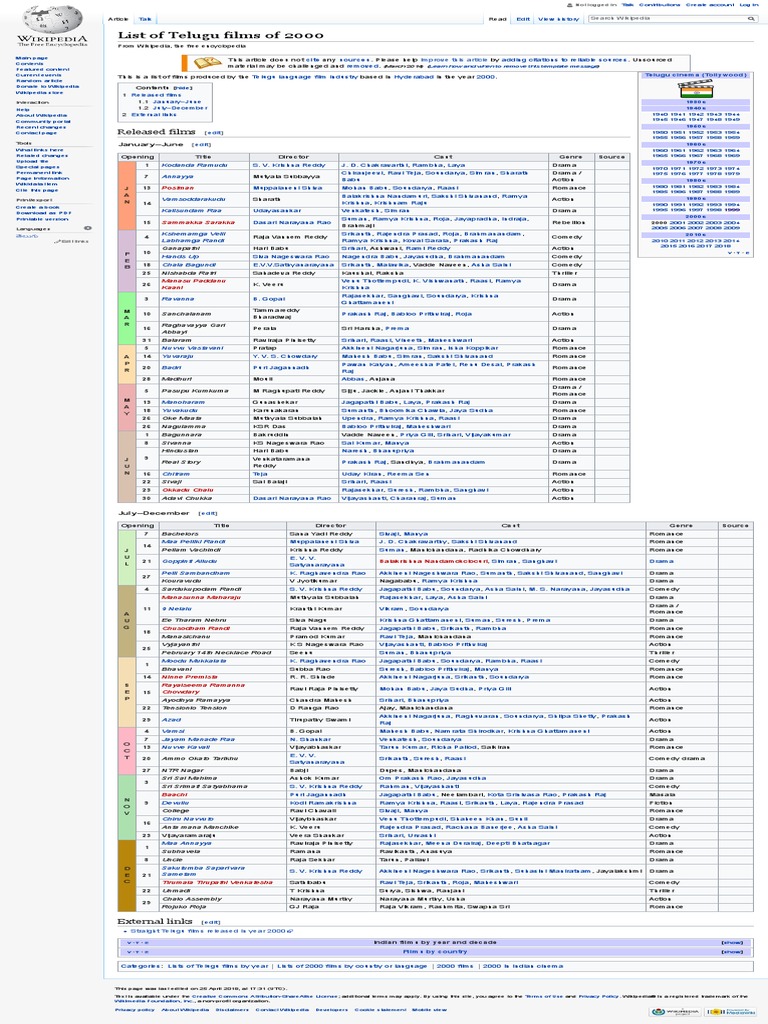 List Of Telugu Films Of 2000 Wikipedia Wikipedia Cinema Of India